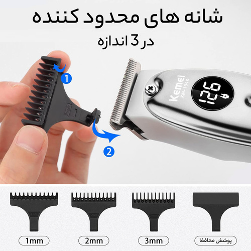 سایر مشخصاتدارای کابل شارژ، روغن، برس تمیز کننده و 3 شانه