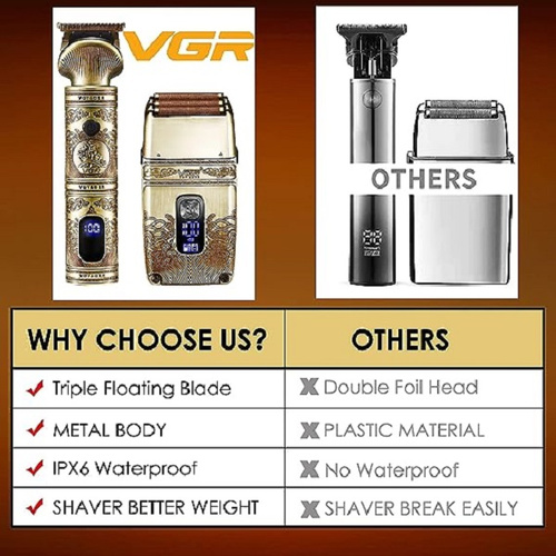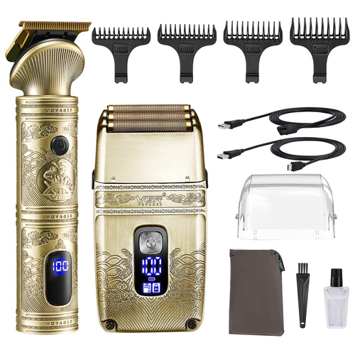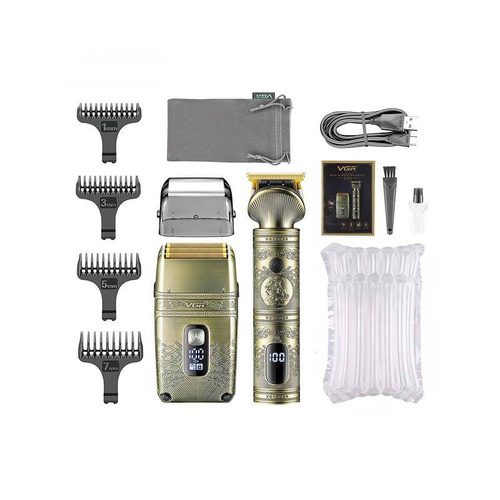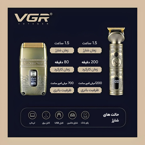 ست حرفه ای ماشین اصلاح وی جی آر مدل VGR V-649 یکی از جدیدترین و بهترین مدل ماشین اصلاح های شرکت وی جی آر می باشد. این ست اصلاح شامل دو عدد ماشین اصلاح بوده که شامل ماشین اصلاح موی سر و خط زن و همچنین شیور اصلاح موی صورت می باشد که هر کدام عملکرد و کارایی متفاوتی دارند. هردو ماشین موتور قدرتمند دارند و جنس تیغه هایشان از نوع تیتانیوم پیشرفته و همچنین استیل ضد زنگ می باشد که قابلیت خود تیز شوندگی دارند. شکل تیغهT مانند است و از اصلاح برش مستقیم هم بهره مند است و تیغه ها قابلیت تنظیم سایز اصلاح را به وسیله شانه های تهیه شده درون جعبه دارند. ست ماشین اصلاح وی جی ار مدل V-649 ضد آب بوده و فناوری IPX6 دارد. جنس باتری ها لیتیومی بوده و ظرفیت آن برای خط زن 1200 میلی آمپر و برای شیور 700 میلی آمپر می باشد. مدت زمان شارژ شیور 1.5 ساعت و مدت زمان استفاده و کار با آن 80 دقیقه می باشد. همچنین مدت زمان شارژ خط زن 1.5 ساعت و مدت زمان استفاده خط زن 200 دقیقه می باشد. اگر به دنبال ست کامل اصلاح از نوع سلطنتی می باشید ست اصلاح وی جی آر مدل V-649 را توصیه می کنیم.