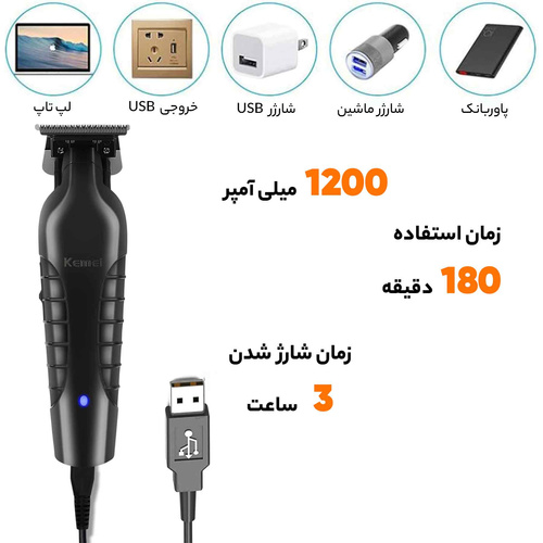 ماشین اصلاح موی سر و صورت کیمی مدل KM-2299 یک دستگاه همه کاره است که با کیفیت بالا و قیمت مناسب به شما ارائه می شود. این ماشین اصلاح با تیغه های کربن استیل بسیار تیز و مقاوم، موهای شما را به راحتی و دقت بالا اصلاح می کند. شما می توانید با استفاده از 3 عدد شانه مختلف، طول و شکل موهای خود را به دلخواه تنظیم کنید. همچنین، این ماشین اصلاح با باتری قوی 1200 میلی آمپر ساعت، زمان شارژ دهی طولانی 180 دقیقه را به شما می دهد. شما می توانید این دستگاه را با کابل USB به هر منبع انرژی 5 ولت متصل کنید و در عرض 3 ساعت، باتری آن را کاملا شارژ کنید. چراغ نشان گر شارژ، وضعیت باتری را به شما نشان می دهد. این ماشین اصلاح با بدنه پلاستیک abs، سبک و مقاوم است. ابعاد کوچک و وزن کم آن، امکان حمل و نقل آسان را فراهم می کند. برای نگهداری بهتر از دستگاه، شما می توانید از روغن روان کننده همراه آن استفاده کنید. ماشین اصلاح موی سر و صورت کیمی مدل KM-2299، گزینه ای ایده آل برای اصلاحی بی نقص می باشد.