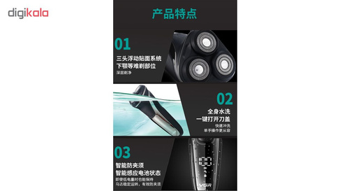ماشین اصلاح VGR مدل V-306 را میتوان یک ماشین اصلاح کامل دانست. سر تیغههای ماشین اصلاح گرد شده تا به پوست آسیبی وارد نکند. تیغهها 2 لبه است و عملکرد آنها به این شکل است که یک لبه، مو را بلند میکند و لبهی دیگر آن را قطع میکند. سری دستگاه با قابلیت حرکت آزادانه در 5 جهت، مناسب اصلاح نواحی انحنادار صورت و گردن است. اگر عادت دارید که برای اصلاح صورت از فوم یا ژل اصلاح استفاده کنید، این دستگاه قابلیت اصلاح به صورت خشک و مرطوب را دارد و حتی زیر دوش نیز قابل استفاده است. این دستگاه را میتوانید1.5 ساعت به سرعت و با اطمینان شارژ کنید که زمان کار عادی با ان 90 دقیقه میباشد