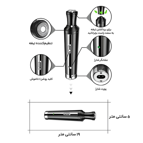 سایر مشخصاتدارای 4 سری متفاوت 1- سری خط زن 2- سری اصلاح موهای زائد گوش و بینی و ابرو 3- سری اصلاح و مرتب سازی موی سر 4- سری ریش تراش و اصلاح و مرتب سازی موی صورتجنس سری ها از فولاد کربن ضد زنگ و ضد کند شدگیشارژ دهی یک ساعت در صورت استفاده بدون وقفهدارای تکنولوژی موتور چرخشی و برش مستقیم بصورت همزمانعدم آسیب به پوست و اندام در زمان استفاده بدلیل بهره مندی از تکنولوژی safe skineتولید صدای بسیار کم در زمان کارکردوزن کم و طراحی ارگانیک