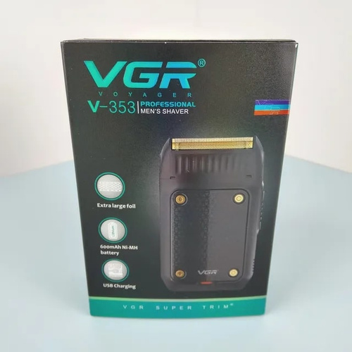 ماشین اصلاح موی صورت وی جی ار مدل V-353، اصلاح به صورت صفر زن، منبع انرژی باتری، تکنولوژی اصلاح به صورت فویلی، به همراه برس تمیز