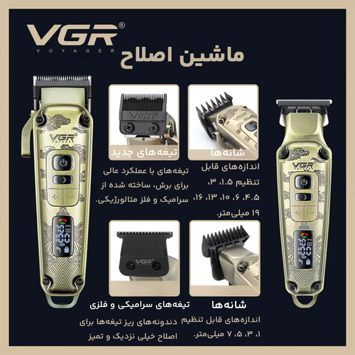 این که از دستگاه خط زن حرفه‌ای وی جی آر V-901 و دستگاه حجم زن وی جی آر V-005 تشکیل شده جزو بهترین و پرطرفدارترین ست های دوقلو ماشین اصلاح برند VGR می‌باشد. دور موتور هر دو دستگاه داخل این ست از 5500 الی 7000 دور در دقیقه به صورت دستی قابل تنظیم است. همچنین کمپانی وی جی آر VGR برای منبع انرژی دستگاه حجم زن برای 2600 میلی آمپر که در مدت زمان 3.5 ساعت شارژ و پس از آن به مدت 250 دقیقه قابلیت استفاده را دارد. همین طور نیز برای منبع انرژی دستگاه خط زن باتری 1600 میلی آمپر که در مدت زمان 2.5 ساعت به صورت کامل شارژ و سپس به مدت 240 دقیقه قابل استفاده دارد را تعبیه نموده است. یک عدد آداپتور متناسب با نیازهای میزان جریان برق ورودی دستگاه همراه محصول ارائه شده است تا موجب شود طول عمر دستگاه افزایش یابد و قطعات الکترونیکی شامل بورد و باطری به طور مفیدتر و بادوامتر ارائه خدمت نمایند.