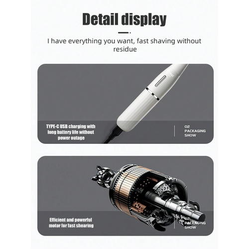اقلام همراه5 عدد سری قابل تعویض- 4 عدد شانه در سایز های متفاوت- برس تمیز کننده- روغن روان کننده- کابل شارژ تایپ C- دفترچه راهنما-