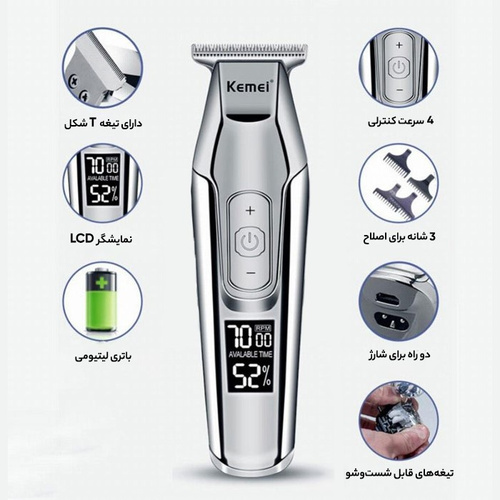 ماشین اصلاح موی صورت کیمی ماشین اصلاح ریش Kemei، یکی از بهترین گزینهها برای افرادی است که به دنبال یک ریش تراش با کیفیت و قیمت مناسب هستند. این دستگاه اصلاح با کیفیت ساخت بالا و عملکرد قوی، توانسته است جایگاه خود را در بازار پیدا کند. با توجه به ویژگیهای منحصر به فردی که این ماشین اصلاح دارد، میتوان گفت که این محصول یکی از پرطرفدارترین محصولات در دسته خود محسوب میشود. نصب و استفاده از این دستگاه بسیار آسان بوده و به راحتی میتوانید از آن برای ترتیب دادن به ریش و موهای خود استفاده کنید. با توجه به تعداد زیادی از مشتریان راضی و تحسینکننده این ماشین اصلاح، میتوان به راحتی این نتیجه را گرفت که این محصول از کیفیت بسیار بالایی برخوردار است و توانسته است اعتماد بسیاری از مصرفکنندگان را جلب کند. ریش تراش کیمی ساخت کجاست؟ ماشین اصلاح ریش Kemei یکی از محصولاتی است که در کشور چین تولید میشود. این شرکت با نیروهای متخصص و با بهرهگیری از تکنولوژیهای پیشرفته و استانداردهای بین المللی، تلاش میکند تا محصولات با کیفیت و قابل اعتمادی را برای مشتریان خود تولید و ارائه دهد. این کمپانی با تمرکز بر کیفیت و اعتماد به نفس، به عنوان یکی از برترین تولیدکنندگان ماشین اصلاح ریش شناخته میشود. تلاشهای این شرکت برای ارتقای سطح تولید و ارائه محصولات با کیفیت، آن را به یکی از برترین برندهای این صنعت تبدیل کرده است. استفاده از تکنولوژیهای پیشرفته در تولید ماشین اصلاح ریش Kemei، موجب شده است که این محصولات با کیفیت و با قابلیت اطمینان بالا، توانایی ارضای نیازهای مشتریان خود را داشته باشند. مزایا و ویژگیهای ماشین اصلاح ریش Kemei ماشین اصلاح ریش Kemei یکی از بهترین انتخابها برای افرادی است که به دنبال یک ابزار قدرتمند و کارآمد برای اصلاح و ترتیب دادن ریش خود هستند. این ماشین اصلاح با داشتن تیغههای فولادی بسیار تیز و مقاوم، به شما امکان میدهد تا به راحتی و بدون اذیت پوست، ریش خود را به شکل دلخواه تنظیم کنید. همچنین با باتری قوی و مصرف کم انرژی، مدت زمان استفاده از این ماشین اصلاح را افزایش میدهد. این ماشین فقط دارای کابل شارژر USB می باشد که برای شارژ باید آداپتور 5 ولت - یک آمپر تهیه نمایید.