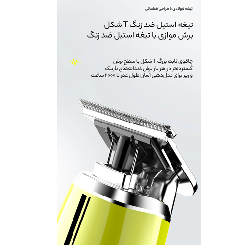 سایر مشخصاتمناسب برای: خط زنی , ابعاد:طول ماشین اصلاح 16 سانتی متر - خط زن DC و شارژی مدت زمان شارژ: 2 ساعت قدرت کامل را می توان برای حدود 80 دقیقه استفاده کرد دارای چراغ نشانگر شارژ دور موتور 7000 دور در دقیقه , نوع باتری: 600 میلی آمپر ساعت