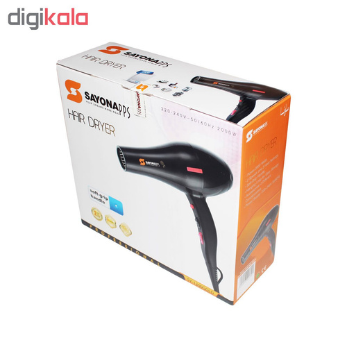 سایونا برند نام آشنا در تولید محصولات با کیفیت برقی است.یکی از این محصولات با کیفیت سشوار سایونا 2000 وات مدل SY-1300 است. این محصول با بهره گیری از موتور AC دارای قدرت پرتاب باد بسیار بالایی است و در دسته سشوار های حرفه ای قرار میگیرد.روی دسته این محصول 3 دکمه تعبیه شده که آنها تنظیم حرارت سشوار و سرعت دمیدن باد را به عهده دارند به این صورت که یک دکمه جهت ایجاد باد سرد به طور لحظه ای است. یک دکمه 3 حالت بدون حرارت، حرارت کم و حرارت زیاد را انجام میدهد. یک دکمه هم تنظیم 3 حالت باد خاموش، سرعت کم و سرعت زیاد را به عهده دارد.همچنین درون بسته بندی سری متمرکز کننده وجود دارد.