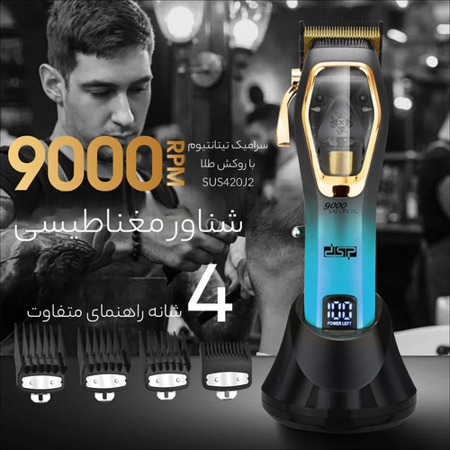 ماشین اصلاح موی سر دی اس پی مدل 91270، با طراحی ارگونومیک و شیک خود، تجربهای نوین در اصلاح موی سر ارائه میدهد. این دستگاه با توان مصرفی 5 وات و موتور قدرتمند 9000 دور در دقیقه، اصلاحی دقیق و سریع را تضمین میکند. تیغههای تیتانیوم و سرامیکی به کار رفته در این ماشین اصلاح، علاوه بر دوام بالا، برشی نرم و بدون اصطکاک را فراهم میآورند. با باتری 2500 میلی آمپر ساعتی، پس از 210 دقیقه شارژ، تا 90 دقیقه استفاده مداوم را میتوانید داشته باشید. صفحه نمایش ال ای دی این ماشین اصلاح، درصد شارژ باقیمانده را به شما نشان میدهد، تا با خیال راحت از آن استفاده کنید. موتور کم صدای آن با قابلیت حفظ سرعت ثابت، اصلاحی راحت و بیدردسر را ارائه میدهد و همچنین، این ماشین اصلاح با ویژگی عدم گرم شدن بیش از حد موتور، امکان استفاده طولانیمدت و ایمن را فراهم میآورد. این محصول در سه رنگ مشکی، طلایی و آبی عرضه میشود که با سلیقه طیف وسیعی از مصرف کنندگان سازگار می باشد. همراه با دستگاه، چهار شانه با سایزهای 3، 6، 9 و 12 میلیمتر، درپوش محافظ، کابل شارژ، روغن روان کننده، برس تمیز کننده و استند شارژر ارائه میشود تا نیازهای مختلف شما را برآورده سازد.