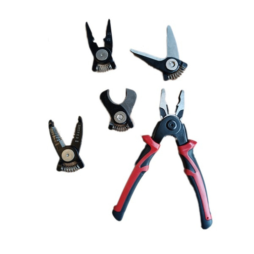 سایر توضیحاتانبردست 5 کاره ( انبردست ، دمباریک ، کابل بر ، قیچی ، سیم لخت کن ) تعوض سریع ، مگنتی ، فنر دار ، جنس سری ها فولادی ، دسته فولادی روکش دار ، جعبه پلاستیکی