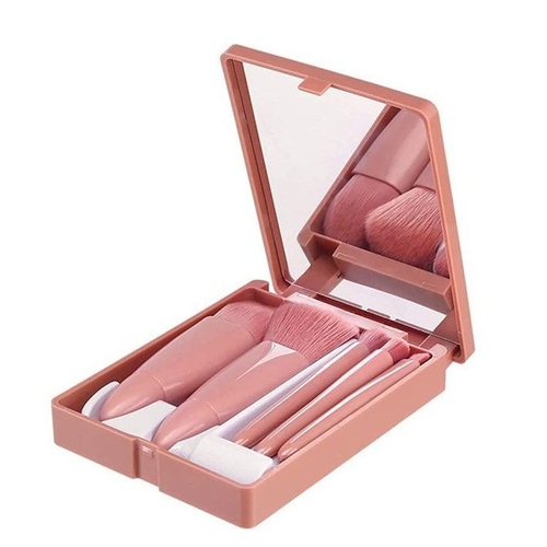 ست براش آرایشی مدل مسافرتی آینه دار مجموعه 5 عددی