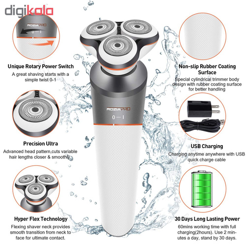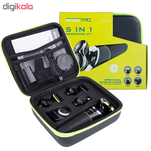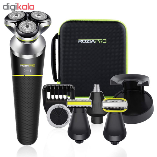 ماشین اصلاح چند کاره روزیاپرو (ROZIAPRO) مدل HT9533 محصولی کاملاً حرفه ای از شرکت روزیا است که مورد تایید استاندارد اروپا CE است. این مجموعه خود به تنهایی قادر به رفع تمام نیازهای اصلاح سر و صورت و گوش و بینی و بدن است. این دستگاه دارای پنج سری متفاوت است. شامل سری چرخشی برای اصلاح ریش، سری اصلاح موهای سر و صورت، سری موزن گوش و بینی، سری اصلاح موهای بدن، یک عدد شانه با امکان تغییر سایز از 1 میلی متر تا 20 میلی متر است و ویژگی بارزی که در این دستگاه به چشم میخورد قابل استفاده بودن دستگاه بصورت تر و خشک و زیر دوش است. همچنین می توان به همراه دستگاه از فوم و ژل اصلاح استفاده کرد. تکنولوژی برش این ماشین اصلاح بصورت مستقیم و چرخشی می باشد. سری های اصلاح سر و صورت، و بدن این دستگاه موها را همانند خودتراش اصلاح و تمیز میکند و برای اصلاح موهای بلند تر می توان از شانه ای که امکان تغییر سایز دارد بر روی سری اصلاح سر و صورت استفاده کرد.از طرفی سری اصلاح ریش به دلیل برخورداری از تیغه های 3 بعدی و منعطف، ریزترین و ضخیم ترین موهای صورت و گردن را اصلاح می کند و باعث می شود در تماس با پوست صورت، مخصوصآ نواحی انحنا دار مثل گردن، از پوست در برابر خراش و بریدگی محافظت کند و نتیجه ای بسیار رضایت بخش را به ارمغان می آورد. با استفاده از سری موزن موهای گوش و بینی را به تمیزی اصلاح می کند. همچنین بدنه دستگاه دارای پوششی ضد لغزندگی است تا با امنیت و آسودگی خاطر بتوان از آن استفاده کرد. از دیگر نقاط مثبت این دستگاه، شارژ شدن آن از طریق کابل USB است و حتی در داخل اتومبیل یا حتی با استفاده از پاوربانک نیز میتوان آن را شارژ کرد. باتری دستگاه در مدت 2 ساعت به طور کامل شارژ می شود بعد از شارژ کامل دستگاه می توان از آن به مدت 60 دقیقه استفاده کرد.