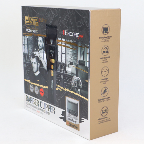 ماشین اصلاح DSP مدل 91417 یک ابزار حرفهای و باکیفیت است که برای آرایشگران و استفاده خانگی طراحی شده است. این دستگاه با موتور قدرتمند 9000 دور در دقیقه و تیغههای ترکیبی از سرامیک و آلیاژ DLC، عملکردی بینقص و سریع را ارائه میدهد. تیغههای پیشرفته این ماشین اصلاح دوام بالا و دقت زیادی در کوتاهی مو دارند. موتور پرقدرت آن با قابلیت تنظیم سرعت در 5 سطح مختلف (7000 تا 9000 دور در دقیقه) مناسب برای انواع موهای ضخیم و نازک است. صفحهنمایش هوشمند این دستگاه اطلاعات دقیقی از سرعت موتور و میزان باتری را نمایش میدهد. باتری لیتیومی قدرتمند این ماشین اصلاح شارژ کامل، امکان استفاده مداوم تا 280 دقیقه را فراهم میکند. این دستگاه همچنین دارای قابلیت تنظیم تیغه برای اندازههای 0.8 تا 1.2 میلیمتر و 10 شانه مختلف برای اصلاح در اندازههای متنوع است. طراحی سبک، ارگونومیک و کمصدای این محصول، آن را به انتخابی ایدهآل برای استفاده طولانیمدت تبدیل کرده است. ماشین اصلاح DSP مدل 91417 با امکانات پیشرفته و کیفیت ساخت بالا، انتخابی مناسب برای افرادی است که به دنبال یک ابزار حرفهای، بادوام و کارآمد هستند.