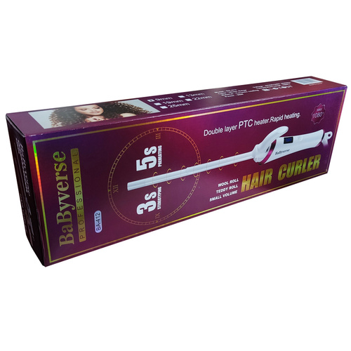جنس میله این مدل از فر کننده بابیورس از سرامیک می باشد که به سرعت داغ شده و حرارت به طور یکنواخت در سرتاسر میله جریان خواهد داشت و بدون آسیب رساندن به موها آن را فر می کند. این فر کننده دارای قابلیت تنظیم دما از 480 تا 980 درجه فارنهایت می باشد که به کمک نمایشگر LCD قابل تنظیم می باشد. برای روشن کردن این دستگاه دکمه پاور را به مدت دو ثانیه نگه دارید و با هر تک فشار این دکمه دما تغییر خواهد کرد. قطر میله این دستگاه 9 میلی متر می باشد و دارای گیره نگهدارنده مو است و به کمک این فرکننده می توانید روی موهای خود فرهای باریک و اصطلاحا سیم تلفنی ایجاد کنید. از دیگر قابلیت های این فرکننده می توان به سیم بلند و چرخش 360 درجه خروجی سیم اشاره کرد.
