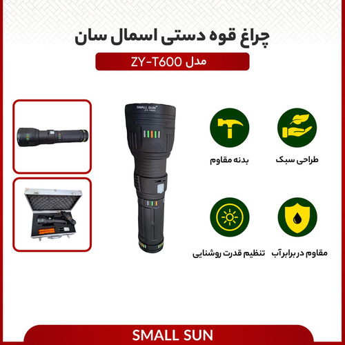 خرید چراغ قوه پلیسی T600 اگر به دنبال یک چراغ قوه باکیفیت و عملکرد عالی هستید، خرید چراغ قوه پلیسی زوم دار اسمال سان ZY-T600 را به شما توصیه میکنیم. این چراغ قوه با روشنایی 5000 لومن و برد نور 1000 متر، گزینهای ایده آل برای استفاده در شرایط مختلف است. با دو حالت نوردهی خطی و پخش نور و قابلیت زوم، همه چیز در تاریکی با آن قابل مشاهده است. همچنین با 4 عدد باتری 4800 میلی آمپر و قابلیت پاور بانک، عمر باتری طولانی و کارایی بالا را تجربه خواهید کرد. این چراغ قوه دارای قابلیت ضد آب، ضد ضربه و ضد خراش هم هست که آن را برای استفاده در محیطهای سخت مناسب میسازد. ویژگی های اسمال سان ZY-T600 حالتهای نوردهی: چراغ قوه زوم دار ZY-T600 از دو حالت نوردهی خطی و پخش نور و حالت چشمک زن برخوردار است. قابلیت زوم: این قابلیت به کاربر اجازه میدهد تا نور را به صورت متمرکز برای دیدن جزئیات دور تنظیم کند. باتری: این محصول 4 عدد باتری 4800 میلی آمپر دارد و به عنوان پاور بانک هم میتوان از آن استفاده کرد. بدنه: این چراغ قوه با قابلیت ضد ضربه، ضد خراش و ضد آب برای استفاده در شرایط سخت و محیطهای نامناسب ایدهآل است. کارایی: چراغ قوه t600 اسمال سان به خاطر کیفیت ساخت و عملکرد بینظیر، انتخابی مناسب برای کوه نوردان، شکارچیان، امدادگران و… است.