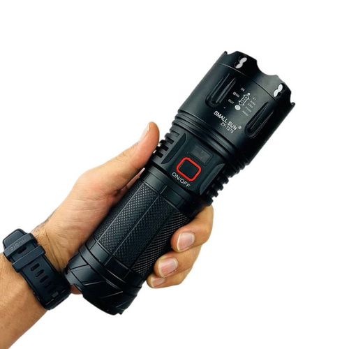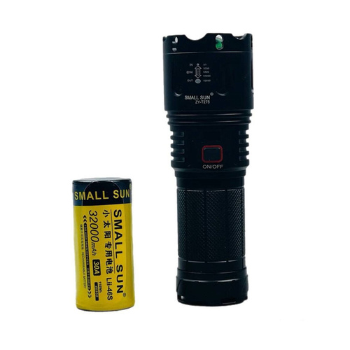 چراغ قوه T275 با ترکیبی از قدرت روشنایی بالا در کنار برد نور زیاد و کیفیت ساخت فوق العاده می تواند یک چراغ قوه حرفه ای برای کوهنوردان و ماجراجویان طبیعت باشد. افرادی که به دنبال منبع نور قوی و قابل اعتمادی می گردند قطعا اسم برند خوش نام اسمال سان را شنیده اند. چراغ قوه اسمال سان مجهز به قدرت روشنایی 5000 لومن می باشد. این میزان روشنایی برای تاریکی مطلق در دل شب فوق العاده است و کاملا محیط اطراف را روشن می نماید. برد نور 1000 متری این چراغ قوه کاربردی میدان دید بسیار بالایی را ایجاد می کند. این چراغ قوه پرطرفدار دارای سه حالت نوردهی زیاد و کم و چشمک زن است که بسته به شرایط محیطی کاربرد دارند. شرکت اسمال سان در طراحی مدل T275 یک عدد باتری لیتیومی 32000 میلی آمپری قرار داده است که در بین هم رده های خود قوی ترین باتری به شمار می آید. قدرت دوام باتری بالا از ویژگی های منحصر بفرد این دستگاه است که تا 10 الی 15 ساعت بسته به حالت نوردهی می توانید از قدرت روشنایی چراغ قوه استفاده کنید. جنس بدنه چراغ قوه اسمال سان آلومینیوم است که مقاوم در برابر ضربه و کاملا ضد آب می باشد. چراغ قوه های اسمال سان برای کوهنوردان و ماجراجویان طبیعت و افرادی که به کمپینگ های طولانی می روند طراحی شده است. برای استفاده در شرایط سخت محیطی واضح است که جنس بدنه چراغ قوه باید بسیار مقاوم باشد. بدنه چراغ قوه اسمال سان مدل T275 از جنس آلومینیوم است. بدنه این دستگاه در برابر زنگ زدگی، انواع ضربه، پرت شدن و فشار کاملا مقاوم است. همچنین ضد آب بودن این چراغ قوه به شما این امکان را می دهد که در شرایط سخت محیطی و شرایط آب و هوایی متفاوت بتوانید به قدرت این چراغ قوه اعتماد کنید. چراغ قوه مدل T275 دارای قدرت روشنایی 5000 لومن است. این میزان روشنایی به راحتی فضای اطراف را کاملا روشن می کند و با برد 1000 متری میدان دید زیادی را فراهم می آورد. این چراغ قوه مجهز به لامپ های LED است. لامپ های LED در کنار مصرف انرژی پایین قدرت روشنایی بالایی دارند. رنگ نور سفید یخی لامپ ها روشنایی شفاف و واضحی را ارائه می دهد. این میزان روشنایی در کنار برد بالا و میدان دید فوق العاده چراغ قوه معرفی شده را یک ابزار کاملا حرفه ای و محبوب تبدیل کرده است. این چراغ قوه مجهز به سه حالت نوردهی زیاد و کم و چشمک زن است.