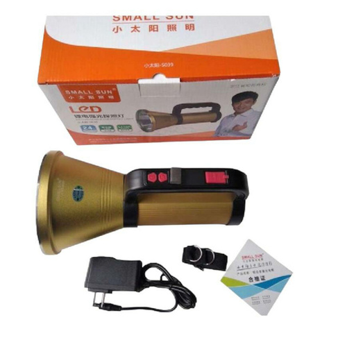 نورافکن دستی اسمال سان مدل ZY-S038 با بدنه آلومینیومی دارای قدرت 500 وات می باشد که دارای 3 حالت نوردهی پر نور، کم نور و چشمک زن بوده. نورافکن S038 با 2 دکمه تعبیه شده بر روی قسمت دسته، این امکان را فراهم می آورد تا ازهر کدام به صورت جدا برای روشن و خاموش کردن استفاده کنید. نورافکن دستی اسمال سان مدل S038 دارای باتری فوق الغاده قوی 12800 میلی آمپری بوده و به همین سبب قابلیت این را دارد تا مدت زمان خیلی زیادی در حدود 5 تا 10 ساعت بسته به حالت نوردهی از خود نور ساطع کند. جنس بدنه چراغ قوه و نورافکن دستی مدل S038 از آلیاژ آلومینیوم محکم است و بسیار مقاوم در برابر ضربه می باشد. این چراغ قوه از یک لامپ بسیار قوی و شفاف از نوع SF-T40 با توان 500 وات تشکیل شده است که به جرات می توان گفت که طول عمر این لامپ بیش از 100 هزار ساعت می باشد، از لحاظ حالات نوردهی نیز این نورافکن دارای سه حالت نوردهی قوی، ضعیف و چشمک زن می باشد که از حالت چشمک زن آن برای مواقع اضطراری استفاده می شود. چراغ قوه دسته دار مدل S038 از لحاظ برد نور و میزان روشنایی نیز در رده بالایی قرار دارد که دارای 4000 لومن روشنایی و برد نور 800 متری می باشد. از مزیت های دیگر نورافکن قوی دسته دار، ضدآب بودن آن است و شما می توانید با خیال راحت در مواقع بارانی و یا حتی محیط مرطوب نیز از آن استفاده کافی را ببرید. چراغ قوه دسته دار بسیار زیبا و خوشدست طراحی شده و با استفاده مداوم از آن احساس خستگی در دست را نخواهید داشت. این چراغ شارژی حرفه ای دارای خروجی پاور بانک بوده و شما به وسیله آن می توانید وسایلی نظیر گوشی موبایل و تبلت را شارژ نمایید. نوع باتری نورافکن مدل S038 پک باتری 18000 میلی آمپر داخلی می باشد که این نوع باتری ها هم قابل شارژ می باشند با هر بار شارژ می توان به مدت 5 تا 10 ساعت بسته به حالت های نوردهی از آن استفاده کنید و نکته جالب اینکه چراغ دستی حالت پاور بانک دارد و می توانید در مواقع ضروری برای شارژ کردن موبایل، تبلت و..از آن استفاده کنید.