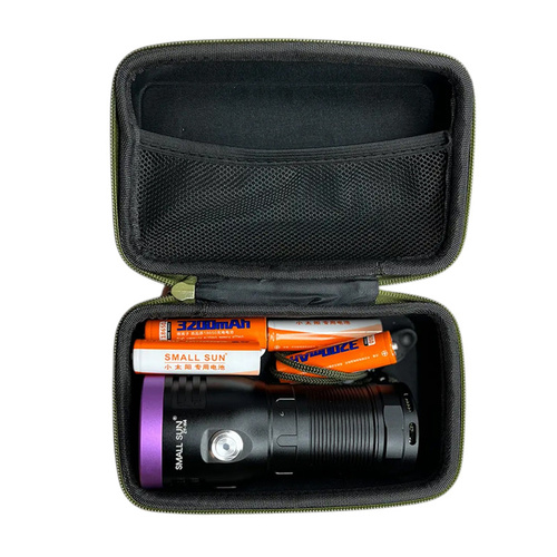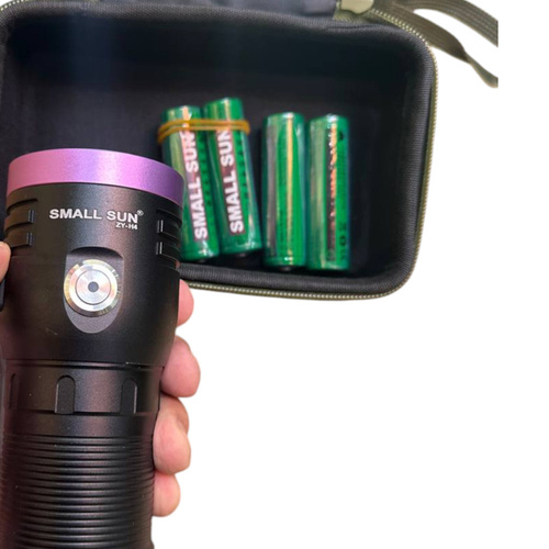 این محصول نمونه یک چراغ قوه کاربردی است که پرتاب نور خوبی داشته و برای استفاده در سفرکمپینگ، طبیعت گردی و فضای باز بسیار مناسب است. 4 حالت روشنایی نور ماورابنفش (UV) نیز برای آن در نظر گرفته شده است. 4 عدد باطری لیتیوم یون 18650 با ظرفیت 3200 میلیآمپر ساعتی این چراغ را تغذیه میکند. این محصول اندازه و وزن مناسبی داشته و به راحتی در جیب قرار گرفته و قابل حمل است. علاوه بر آن دارای کیف حمل، شارژر تایپ سی و 4 عدد باتری لیتیوم یون 18650 نیز میباشد. توصیه میشود به علت قوی بودن نور این چراغ قوه، مستقیم به آن نگاه نکنید. همچنین بهتر است از آتش و حرارت به دور بوده و در جای خشک و خنک نگهداری شود. مدت زمان کارکرد چراغ نیز، تا 8 ساعت بسته به حالت نوردهی گزارش شده است. از دیگر ویژگیهای این چراغ قوه یووی اسمال سان میتوان به طول موج 395 نانومتری و لامپ های هسته ای به عنوان منبع نور اشاره کرد. از این چراغ برای تشخیص ادرار حیوانات خانگی مثل گربه و سگ ، پیدا کردن طعمه های ماهیگیری ، تشخیص سنگ های معدنی و شکار عقرب استفاده کرد.