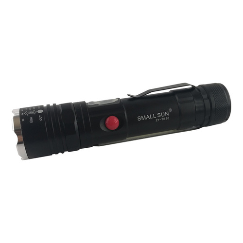 چراغ قوه اسمال سان مدل ZY-T626 یکی از گرانترین و با کیفیت ترین محصولات این کمپانی (اسمال سان) می باشد. برد چراغ قوه به علت لامپ T6 اصلی آن 300 متر می باشد. داخل جعبه گرانترین و با کیفیت ترین باتری اسمال سان (3800 میلی آمپر) موجود می باشد. که تا 6 ساعت به طور مداوم می توان از آن استفاده کرد. پشت چراغ قوه یک آهنربا قوی کار گذاشته شده است که به راحتی می توان به سطوح فلزی متصل کرد. همانطور که در عکس قابل مشاهده می باشد، بغل چراغ قوه COB قوی وجود دارد که می توان برای مواقعی که به نور یکنواخت نیاز است از آن استفاده کرد. این چراغ قوه دارای قابلیت زوم نیز می باشد.