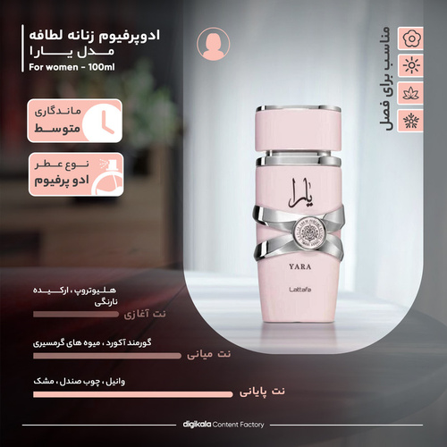 ادو پرفیوم زنانه لطافه مدل یارا حجم 100 میلیلیتر