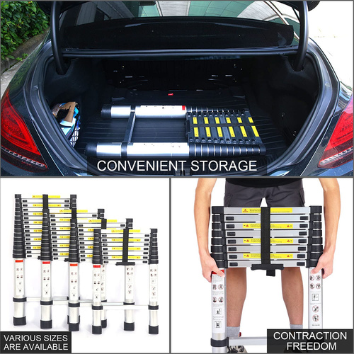 نردبان تلسکوپی (تاشو) Aluminum Telescope Leader دیگر نگران سر خوردن پایه نردبان یا افتادن از آن نباشید. یک طرف نردبان تلسکوپی (تاشو) Aluminum Telescope Leader همانند اهرم عمل کرده و تعادل آن را حفظ می کند. نردبان تلسکوپی (تاشو) Telescope Leader به راحتی قابل استفاده است . این نردبان 14 پله دارد. وارتفاع آخرین پلهی آن از سطح زمین به3٫8 متر میرسد. وزن پایین محصول در مقایسه با نردبان های آهنی و چوبی جابه جایی را بسیار آسان کرده است. این وزن مناسب بهدلیل استفاده از آلومینیوم در ساختار نردبان تلسکوپی است. این فلز استحکام بالایی دارد و فرد میتواند با اطمینان کامل از این محصول استفاده کند. ارتفاع کامل مستقیم این نردبان 5 متر است و وزن قابل تحمل این محصول 150 کیلوگرم اعلام شده است. این نردبان کاربردی ، سبک وزن و مقرون به صرفه تلسکوپی آلومینیومی به اندازه کافی همه کاره است تا بتواند بسیاری از کارهای خانگی را انجام دهد و به اندازه کافی قوی است که اکثر مشاغل اطراف دفتر را انجام دهد. دارای وزن مناسب برای حرکت آسان و نردبان چند منظوره که می تواند به سرعت راه اندازی شده و به راحتی ذخیره شود. حداقل ارتفاع تا شونده ی این نردبان متفاوت است و این قابلیت،قرار گیری آن را در فضای گاراژ ، کمد یا وانت آسان می کند. برای یک نردبان جهانی که می تواند برای دسترسی به زیر شیروانی شما ، تغییر لامپ ، تزئین و موارد دیگر استفاده شود این مورد مناسب است. این نردبان چند منظوره با بالاترین استانداردها با استفاده از مواد با کیفیت بالا ، از جمله آلومینیوم مقاوم در برابر خوردگی مقاومت دارد و، مطابق با استانداردهای GPSG و EN131 برای آرامش کامل شما مطابقت دارد.